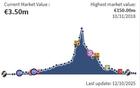 库蒂尼奥身价下降到350万欧,巅峰身价1.5亿,本赛季52场11球